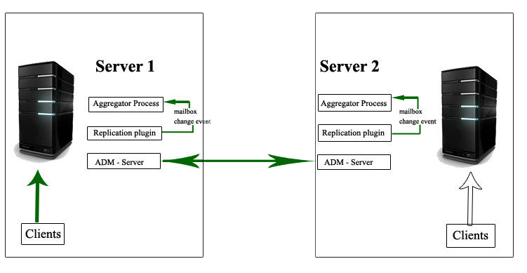 Combined with sync the HA solution offers failover solution. HA ensures continuation of services while sync has all data in place so user has no downtime. As compared to backup solution which results in loss of data due to time gap between backup this is live sync implementation so all data is available on all servers. This enables us to serve all users even in event of complete failure of server. Application: Requisite for sync and HA is new version of sentrymail be installed as we have included all plugins and sync softwares required, if the servers are geographically isolated the connect line should be good enough to manage this data transfers as emails results in huge traffic. First of all, why sync replication instead of block level filesystem replication? - dsync won't replicate filesystem corruption. - A cold restart of replication won't go through all of the data in the disks, but instead quickly finds out what has changed. - Split brain won't result in downtime or losing any data. If both sides did changes, the changes are merged without data loss. - If using more than 2 storages, the users' replicas can be divided among the other storages. So if one storage goes down, the extra load is shared by all the other storages, not just one. This replicator plugin based on notify plugin. It listens for all changes that happen to mailboxes (new mails, flag changes, etc.) Once it sees a change, it sends an asynchronous (username, priority) notification to replication-notify-fifo. The priority can be either high (new mails) or low (everything else).